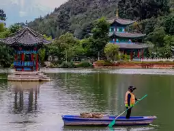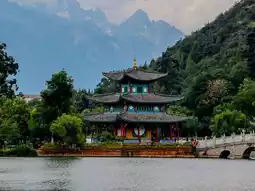 This beautiful garden features a crystal-clear pond reflecting the picturesque Jade Dragon Snow Mountain. The tranquil atmosphere is perfect for relaxation and photography. Highlights include an arched bridge, an ancient Chinese pavilion, and a mountain backdrop. Visitors can stroll around the garden, breathe in the fresh air, and enjoy the natural beauty combined with ancient Chinese culture. According to local legend, a black dragon once resided in the pool.