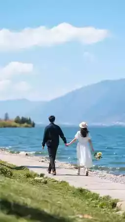 A moment holding hands watching the snow mountain, a ride by Erhai Lake,
