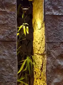 Stepping into the homestay, the collision of old bricks and new construction immediately catches the eye—dark tile eaves are tinged with ancient charm in the sunset glow, bamboo woven lamps cast warm yellow halos under the night sky, and bamboo shadows peeking through stone cracks along the gravel path turn every step into a poetic pause.