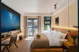 The rooms come with a projector and membership access, so you can lie in bed watching movies at night, which is very cozy. If you want to go out and explore, the guesthouse owner also provides electric scooters. Riding on the cobblestone streets of the ancient town or visiting nearby attractions offers a very free and flexible experience. For friends driving here, there are charging stations available, so no worries about charging.