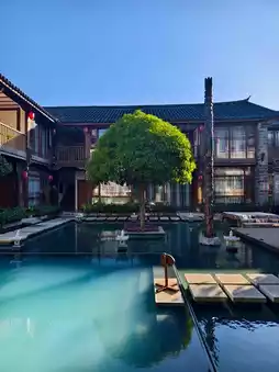 No need to rush, just walk slowly along the bluestone path. The road still holds the moisture of the day, and you can hear a faint "creak" underfoot. Lanterns light up one after another at the corners, and the warm yellow light filters through the bamboo strips, casting scattered spots of light on the walls, like a handful of crushed stars scattered about.