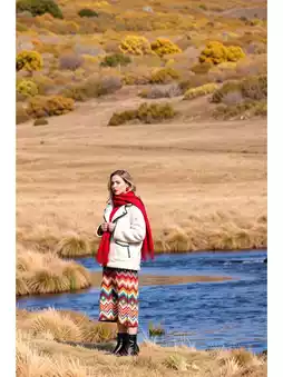 Red scarf + ethnic-style pants (as shown) for stunning photos!
