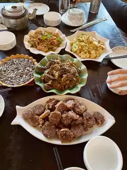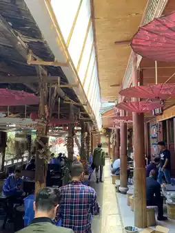 This restaurant has not only a beautiful decoration and rustic ambience, varies indoors/outdoors, but its dishes include traditional Yunnan and Sichuan flavors. In Yunnan, pork is the most popular meat, and you can get many different preparations ranging non-spicy to Sichuan spicy (🌶 🌶 🌶 🌶 ) level. Rice is served in traditional wood bowl, and delicious Chinese bread is complementary.