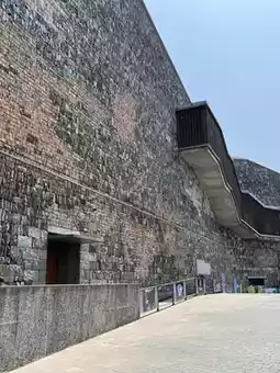 This time, I visited an exhibition in Lin'an, and the architecture itself is quite distinctive, designed by architect Wang Shu. The entrance, combined with the lush green mountains and waters behind it, gives off a particularly peaceful and natural vibe.