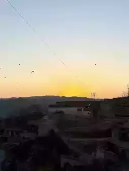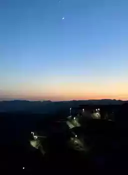 In the evening, when the sun sets, the sky is dyed orange, and flocks of birds fly by. After a while, I could see the street lights in the village and the clear and bright 🈷️ teeth in the sky. I happened to see Venus and the moon that day.