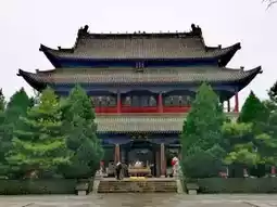 Entering from the mountain gate on the bank of Hong River, the mausoleum and ancestral temple face the high cliffs on the river bank. The gate has two floors, the upper one is the music tower, which is used for performing music. After entering the gate, there is a wide square with a wooden archway in the middle of the square. Beyond the archway is the main hall for sacrifices, with a supporting building on each side. On both sides of the mausoleum and nearby there are more than ten steles from the Jin, Yuan, Ming and Qing dynasties, recording the achievements of Emperor Yao and the evolution of the mausoleum and shrine.