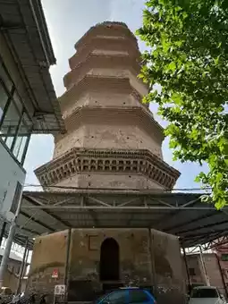 The brick pagoda of Ganying Temple in Quwo, built during the Jin Dynasty (1165), is a dense-eave style structure. The great earthquake of 1303 (Yuan Dynasty) caused the top of the pagoda to fall and the upper part of the pagoda body to crack. It has since survived two major earthquakes during the Jiajing period of the Ming Dynasty and the Kangxi period of the Qing Dynasty. During World War II, the Japanese army attempted to blow it up, but the stone pagoda stood firm. After more than eight hundred years, the stone pagoda is broken but still stands tall. In the 1970s, it was still the tallest building in Quwo, a landmark of the county, but now it is submerged in a residential area, next to a primary school. The matching Ganying Temple, once filled with the scent of incense, was sadly burned down by the invading Japanese army in 1941.