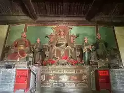 The stage of Niuwang Temple is also Yuan Dynasty architecture. Its appearance is relatively simple, with a straightforward frame structure, uninspired caisson patterns, and an ordinary temperament. Inside the main hall, the Ox King, Horse King, and Dragon King are enshrined, very down-to-earth.