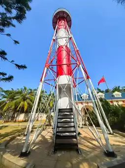 On the shore, there is a 22 m high, 1.88 m wide iron lighthouse built in the 19th year of the Guangxu reign of the Qing Dynasty (1893), which is one of the 100 famous lighthouses in the world and has been featured on Chinese postal stamps.