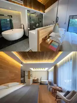 High-quality guest rooms, Dyson hair dryers, Lafite Ge Mu bath products, hand-ground coffee, freshly squeezed juice, book bar, terrace, every detail is super awesome