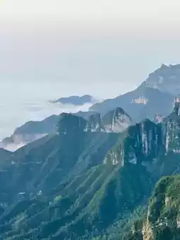 The early morning at Wangmang Ridge is most captivating for its ever-changing sea of clouds. Standing atop the high cliffs, waves of white clouds surge beneath your feet, making you feel as if you're standing at the edge of the heavens. As the first light of dawn appears, the sky gradually takes on hues of orange and red. The sun begins to faintly emerge from behind the clouds, and the mist transforms into a shimmering tapestry of gold and silver under the changing light.