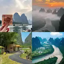 Take a small boat in Xingping to tour the Small Li River, with a ⏳duration of about 90 minutes. 🚏The dock route is Xingping to Fishing Village and back, where you can see the reflection of the Yellow Cloth Shoal, the scene depicted on the 20 yuan note💴.