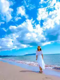 The water is clear and the sand is white. The beach is soft and delicate.