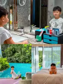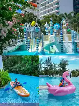 |A hotel with a huge water fortress room for children to play with paddleboards in front of. I have brought my kids to Hainan five times.