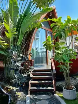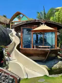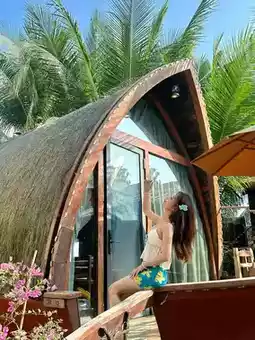 Cleanliness: Upon entering, there's a reassuring wooden ambiance, clean and tidy. Environment: You can see the sea from the room!! There are big coconut trees and a super large swimming pool which is great!