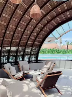 From the moment I entered the lobby, the design details blew me away: beige arches embedded with wave patterns, chandeliers in the lobby resembling floating giant pearls—it felt like walking into a modern underwater art gallery.
