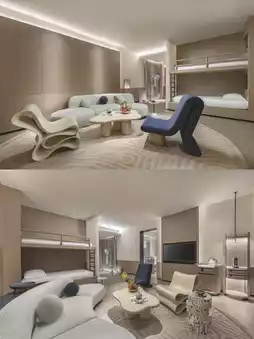 • Unique Design: Inspired by an "Ocean Jewelry Shop," with pearl-like lamps casting a warm glow and blue-and-white furniture echoing coral reef hues. Guest rooms blend contemporary trends with Li ethnic rattan weaving techniques.