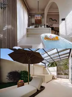 🛏️ Facilities: The hotel features standalone villas with spacious, bright, and well-layout rooms equipped with top-notch amenities. The courtyard has a swimming pool, lush greenery, and even a slide for kids. There are also outdoor pools, a children's playground, BBQ facilities, and more, making it perfect for both family trips and romantic getaways.