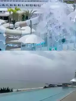 1. The Santorini Floating Island Pool connects directly to Qingshan Bay Beach, making you feel like you're on a Greek island.