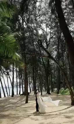 🍃 Stroll through the coconut grove in a lace mermaid dress, letting the hem flow naturally with the sea breeze.