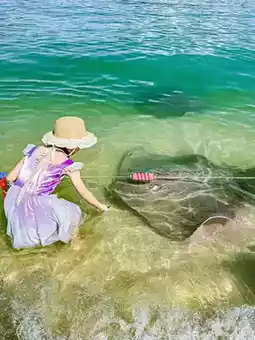 This is the third time I've brought the kids to Hainan this year! 🏖️ Compared to the crowded Sanya, I prefer Lingshui, this hidden gem of a small city perfect for kids. The children play in the clear beach sand and water, see the glass sea, ride the sea train, feed the manta rays up close, and enjoy the fun of beachcombing~ It's just over ten minutes by high-speed train from Sanya, and the prices are friendly.