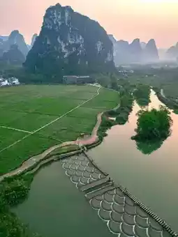 A pastoral town with mountains and water, filming location for 'Hua Qian Gu'