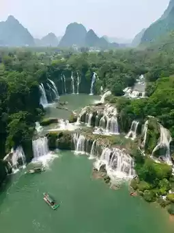 Spanning China and Vietnam, boating under the waterfall, then going up through various viewing platforms