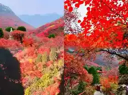 Frost-dyed red leaves and a mountain painted red, the scenery is as beautiful as a painting.