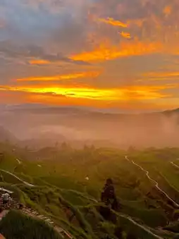 In August, the terraces are in their peak growing season, with vibrant green rice seedlings 🍃 resembling a "matcha mille-feuille" cake—a green ocean perfect for capturing idyllic countryside photos 📷. Occasionally, there might be a brief rain 🌦️, and after the rain, mist drifts in and out, creating a dreamy and ethereal beauty as the terraces appear and disappear.