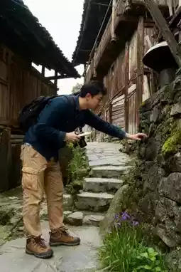 Upon entering the village, I saw water buffaloes leisurely bathing in the water, villagers making wine using traditional methods by the roadside, and women pounding fabric for persimmon dyeing. Everything felt so simple and natural. What fascinated me most were the five drum towers in the village, especially seeing the village elder's handwritten solar term farming calendar in the Gaoluo Drum Tower, which exuded a strong sense of daily life.