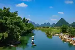 Day 1: Travel from Guilin to Yangshuo and experience the Li River bamboo raft drifting (from Yangdi to Xingping). You can personally feel the poetic scene of "a boat floating on emerald waves, people traveling in a painting," and take photos at the background featured on the 20 yuan banknote. In the afternoon, you can rent an electric bike or bicycle to roam along the Yulong River trail or the Ten-Mile Gallery, weaving through rice fields and karst peaks.