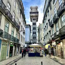 Finally, we arrived at the Santa Justa Elevator (Elevador de Santa Justa). This 19th-century iron elevator resembles a miniature version of the Eiffel Tower in Paris. You can take it directly to the observation deck, where you can take in the panoramic views of Lisbon's red-tiled rooftops. It's incredibly romantic!