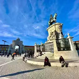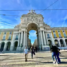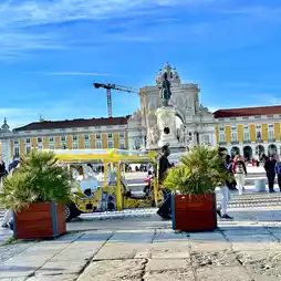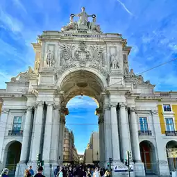 Today, we arrived in Lisbon, Portugal, and began our journey by visiting the magnificent Augustus Tower (Arco da Rua Augusta)! Passing through this imposing gate, we arrived at the bustling Praça do Comércio (Commerce Square). Facing the Tagus River, the square is surrounded by golden buildings and centered by a statue of the King. Standing here, you can fully immerse yourself in the grandeur of a former maritime power.