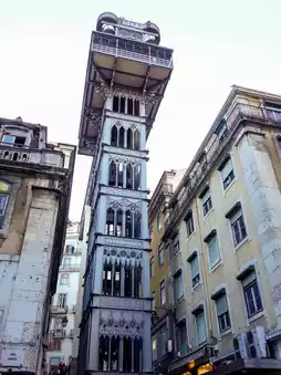 While walking through the Baixa district, Lisbon's downtown area, you'll notice a sleek iron tower rising into the sky between the narrow alleys. That's the Santa Justa Elevator (Elevador de Santa Justa)—a 19th-century vertical elevator connecting Lisbon's Old Town to the upper levels. Now, it's a beloved landmark offering panoramic views of the city.