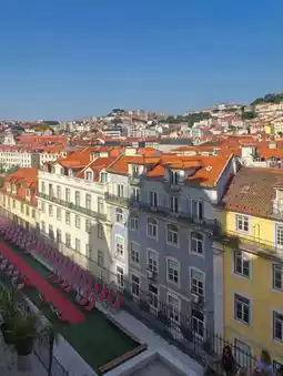 At the top of the elevator is the observation deck (Miradouro do Elevador de Santa Justa). Standing there, you can see Lisbon's red rooftops unfolding like waves, with the Castelo de São Jorge and the Rio Tejo River in the distance. As the afternoon sky deepened, the entire city was bathed in a golden glow, and I couldn't help but exclaim, "Is Lisbon really this beautiful?"