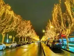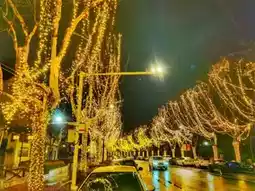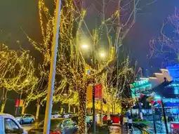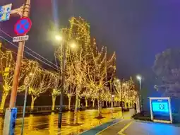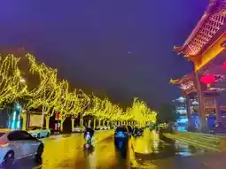 The night lights on Dayou Street in Lishui, Zhejiang, really have a unique charm. The street is adorned with starry lights on both sides, and the warm white lights illuminate the trees along the street, giving a warm and romantic feeling. Above the road, there are also 'angel' lights set up, symbolizing cuteness and auspiciousness, making the whole block seem like it's in the midst of a 'starry sea'. From a high vantage point, the night view of the entire block is even more breathtaking, with flowing lights and colors, like a dreamy world. Whether strolling or driving through, one can feel this unique wonder.