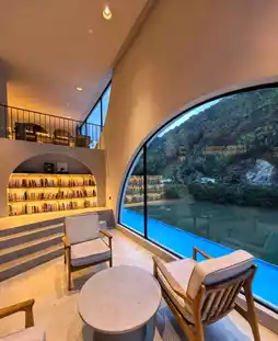 ✔️The cliffside library’s glass curtain wall offers a 180° panoramic mountain view; sunlight pouring in creates a fairy tale world✨