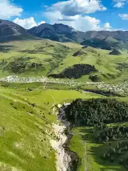 š¾Zeba Village: A paradise at the foot of Genie Mountain, with golden meadows and glaciers in autumn.