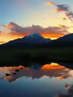🏞️ A secret lake reachable by a 1-hour hike. Time seems to stand still when Mount Shozha is reflected in the water.