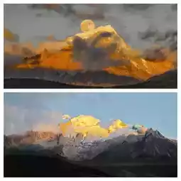 Snow Mountains: The golden sunlight hits the peaks “on time” every day, like crowning the sacred mountain with a golden crown