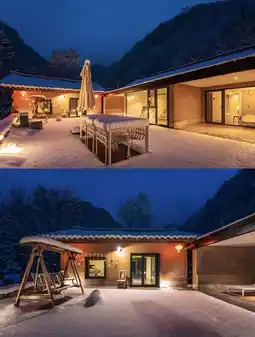 ☀️ Or encounter a mountain snow, as if falling into a misty ink painting. The warm yellow lights of the courtyard dispel the cold. Drink a cup of freshly ground coffee, lazily enjoying the winter scenery outside the window, stealing a moment of leisure ☕