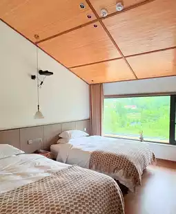 There are double rooms with bathtubs 🛁, family-friendly triple rooms, and loft quadruple rooms for friends and family with a mahjong table and a large balcony. The whole house has an intelligent voice control system, and when you open the curtains, you feel like you're nestled in the clouds ☁️