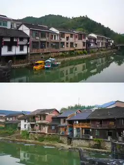 Liyang Baisha Ancient Town has a history of over 500 years and is known as the 'Little Nanjing'. The Liuyang River divides it into east and west sides. The town is surrounded by beautiful mountains and clear waters, with a picturesque landscape. Along the riverbanks are the extending stilted buildings, with stone bases and wooden structures, very similar in design to the stilted buildings in western Hunan. In the river, there are ferries and ancient water wheels, accompanied by reeds and weeping willows, making the whole ancient town feel fresh and peaceful.