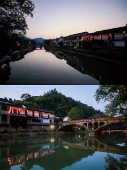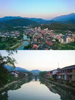 Rivers flow through the south, shrouding the homes in mist. Walking on the Baisha Bridge, below is the clear Daxi River flowing through the village. Looking from the bridge, the rippling water reflects the scenery, and the small bridges, flowing water, and old streets create a simple and elegant ink painting. Here, the ancient bridge and the tile-roofed houses complement each other, presenting a picturesque scene of 'gentle reflections over the cascading weirs, with green waters and hills like Little Nanjing' nestled by the mountains and waters.