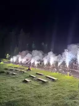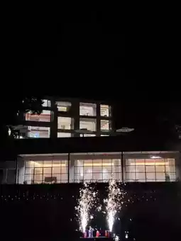 The room I stayed in has a natural wood style, with ridiculously large floor-to-ceiling windows. Lying in bed, you can see the mountain view 🏞, and there’s a private hot spring bath. After soaking, my whole body felt relaxed. During the day, I swam in the infinity pool, fished in the fish pond, and played mahjong with friends, making the experience perfect. The best part was at night, when everyone set off fireworks together, feeling the joy nature brings amid the sounds of fireworks~