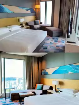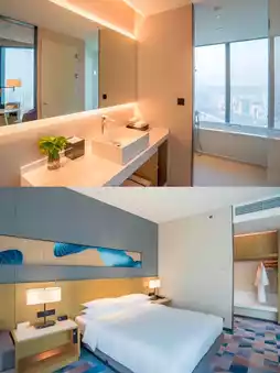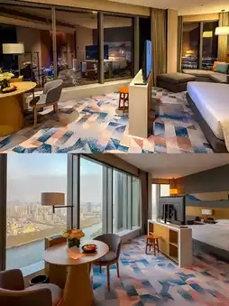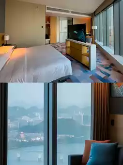 As a skyline hotel in Liuzhou, at Hyatt Place you can enjoy the magnificent landscape and bustling scenes of Liuzhou. The hotel is located in the Poly International Center in the Liubei District, surrounded by mountains on all sides and embraced by the Liu River. Enjoy the captivating 360-degree view of the Liu River. From the hotel lobby bar on the 42nd floor, you can see the enchanting sunset and evening glow. On clear days, you can watch the sunrise over the Liu River from the comfort of your bed in the guest room.