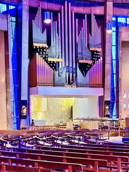 ✨ As you step inside, the space transforms into a celebration of light, shape, and color. You’ll be captivated by the stunning stained glass that radiates a kaleidoscope of hues, while the modern design creates a sense of openness and serenity.