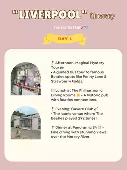 β’ A guided bus tour to famous Beatles spots like Penny Lane & Strawberry Fields.