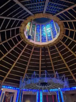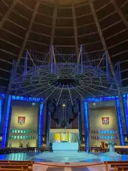 Liverpool Metropolitan Cathedral is a dazzling icon of modern architecture affectionately with its circular design and towering crown like spire, the Cathedral stands boldly against the city skyline, a symbol of innovation and inclusivity step inside and you're immediately wrapped in a kaleidoscope of colour and light. The stained glass lantern ceiling is the star of the show casting rich blues, reds, and golds that shift as the sun moves, bathing the interior in an ever changing show. Whether you're into architecture, art, or serenity with a splash of color, Liverpool Metropolitan Cathedral will leave a lasting impression.