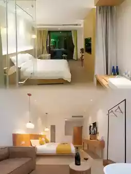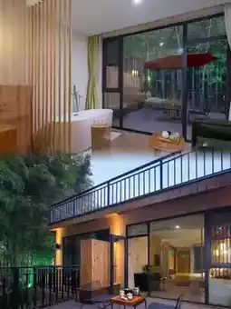 The homestay is a detached villa with many rooms. I really like this homestay. The design is very distinctive. The ornaments and decorations are very exquisite. You can see the boss's intentions. The rooms are spacious, ventilated and comfortable. You can see the scenery in the room, the surrounding air is also very good, and it is very quiet at night. It is surrounded by green plants, gardens and lawns, and you can walk to Nanshan Bamboo Sea, Yushui Hot Spring and Nanshan Bamboo Sea Old Street. It's so good to take a hot spring before going to bed!